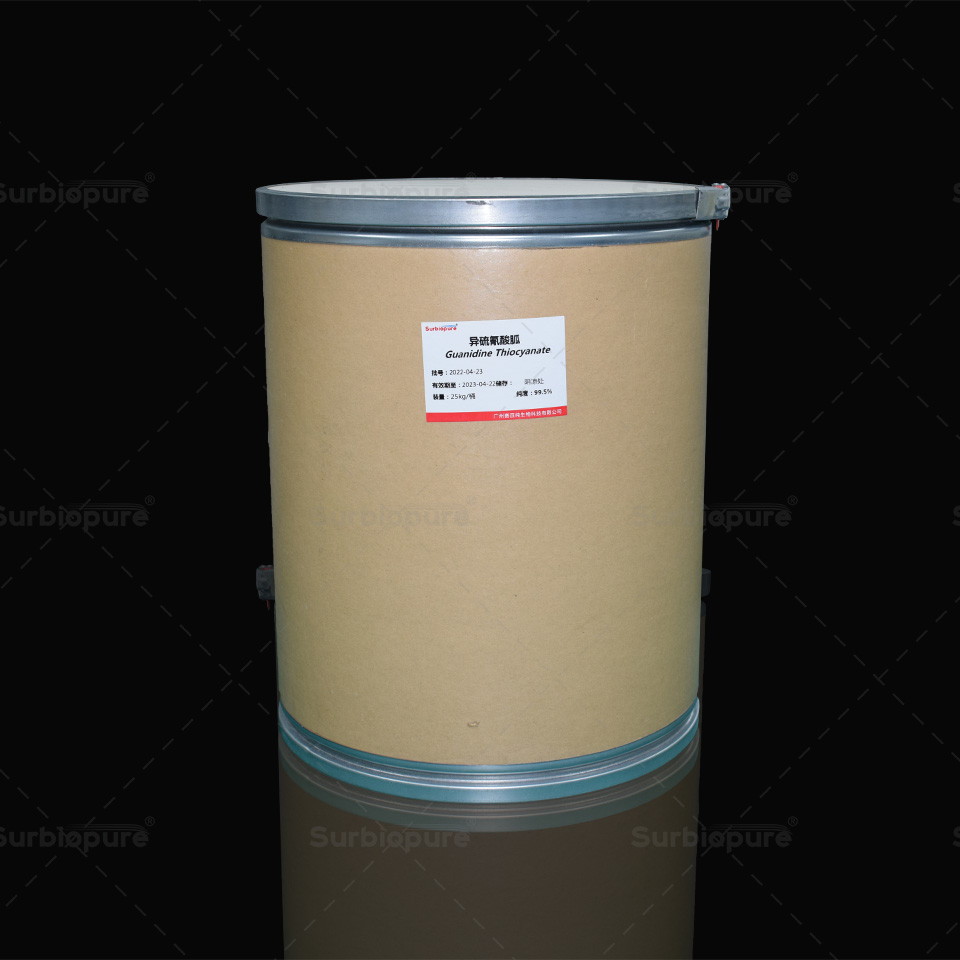 • 異硫氰酸胍 核酸提取試劑原料 現貨 分(fēn)子式:CH5N3·HSCN 産品等級:優級品 外觀:白色結晶 容量:25kg/紙(zhǐ)闆桶 純度:99.5% CAS:593-84-0 産品用(yòng)途:核酸提取試劑